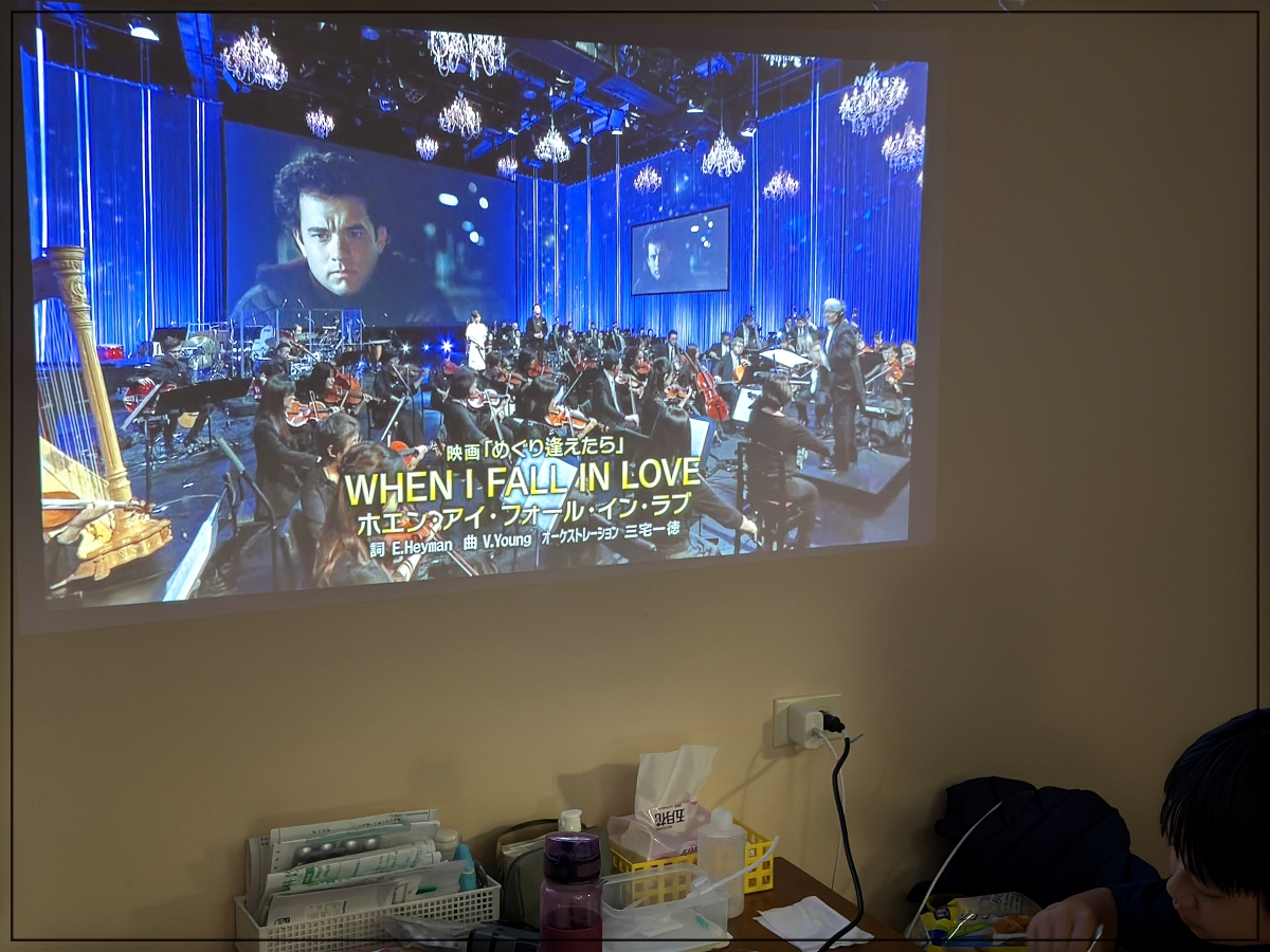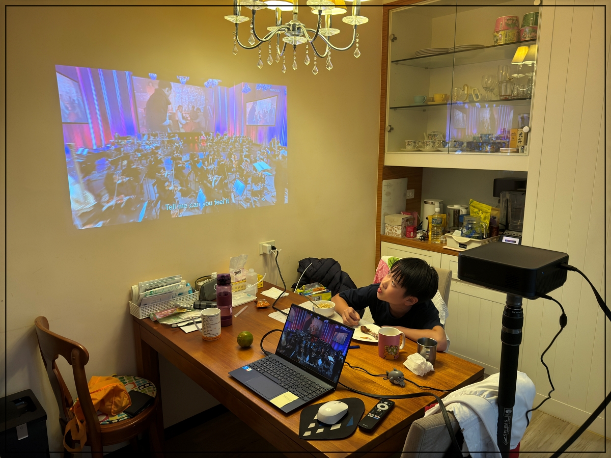 小朋友很好奇投影機的效果,開燈後的效果如下圖。
