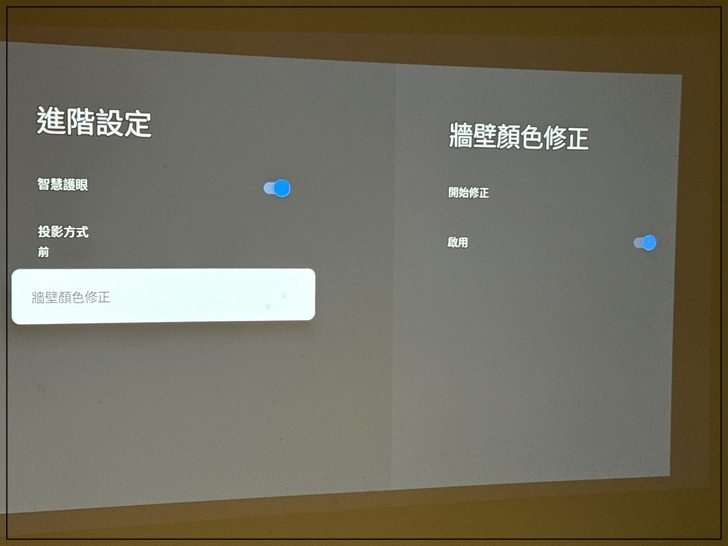 牆壁顏色修正也是黑科技之一,因為現在許多人直接用牆壁代替布幕,因此會有這個設定。