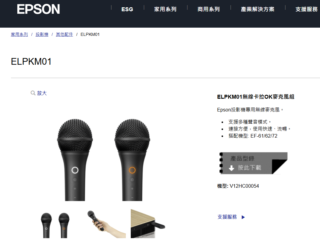 所謂的相關設備其實是這個投影機專屬的無線麥克風,看樣子似乎是另購的,因為這次體驗未提供,所以無法描述實際使用狀況,相關資料可參考官網說明。