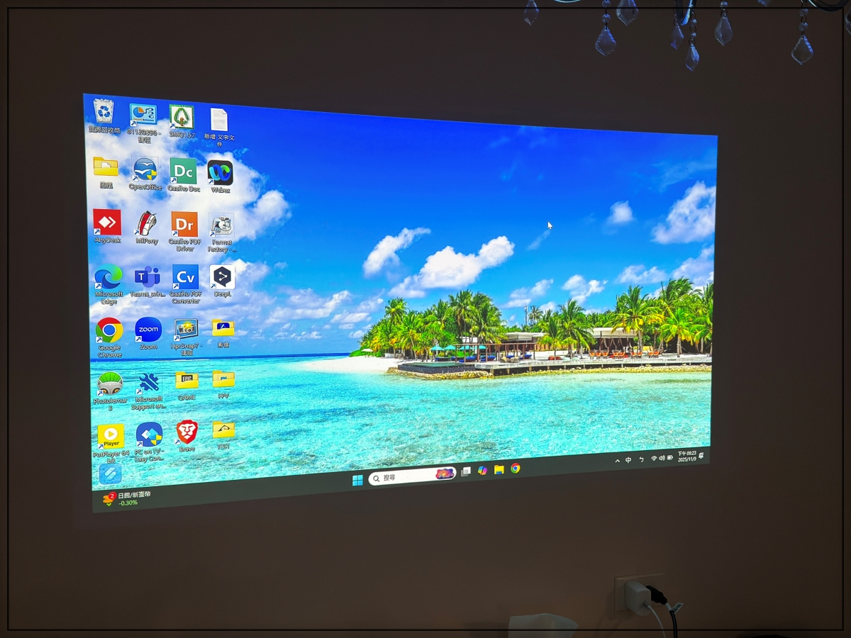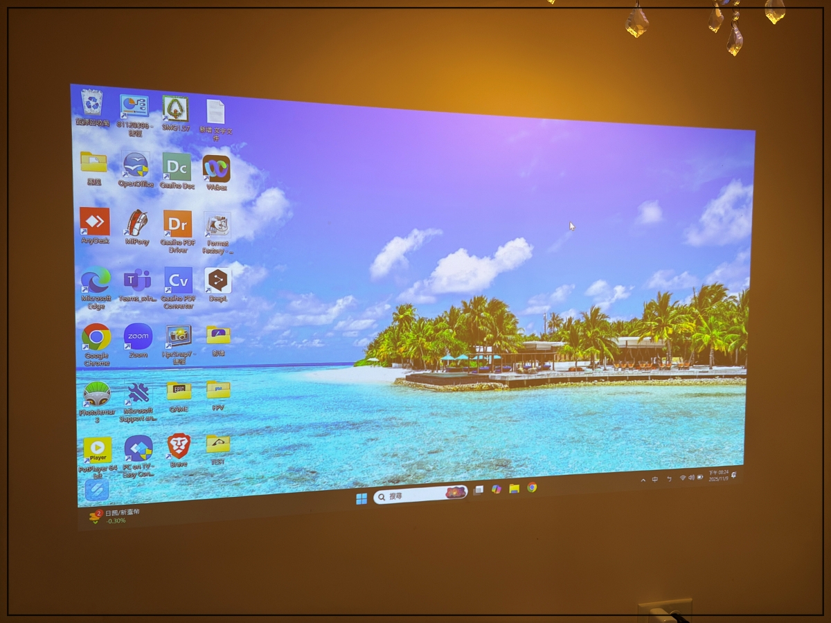 HDMI輸入筆電畫面,關燈後的畫面很清楚。