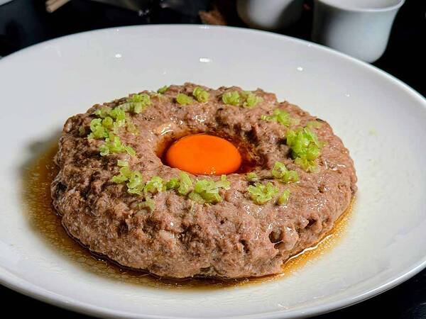窩蛋手打天津冬菜牛肉餅: 經典家常菜的升級版,手打牛肉餅口感富有筋度、肉汁飽滿,加入冬菜增添鹹香。上桌時的生蛋黃猶如小太陽,拌入後使整體風味更加濃郁滑順,散發出令人懷念的懷舊滋味。