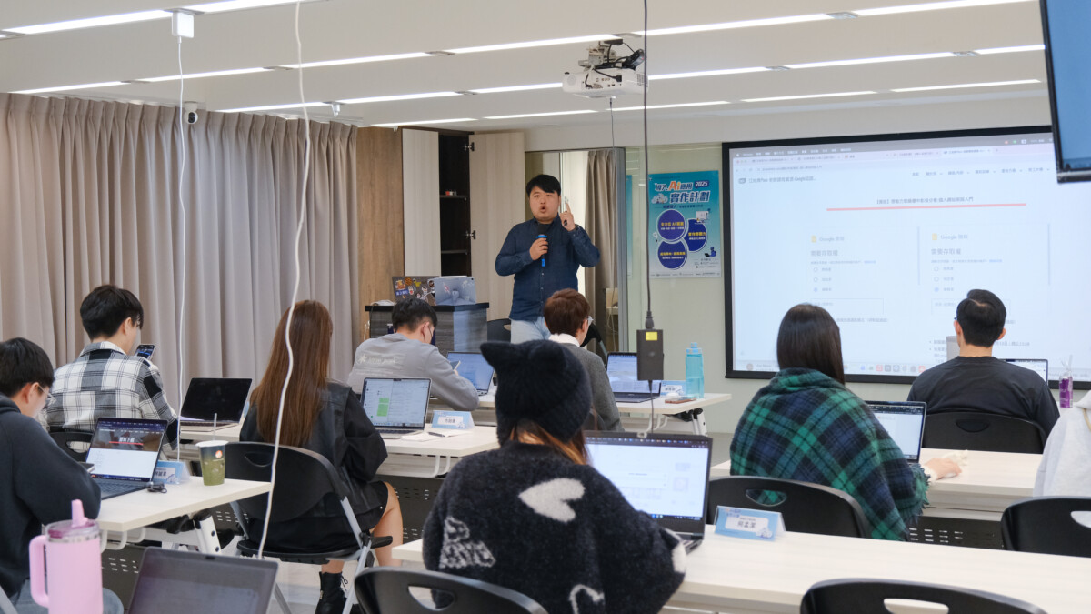 (江柏青老師指導學員利用AI生成LINE圖文選單。圖:霖果創意提供)