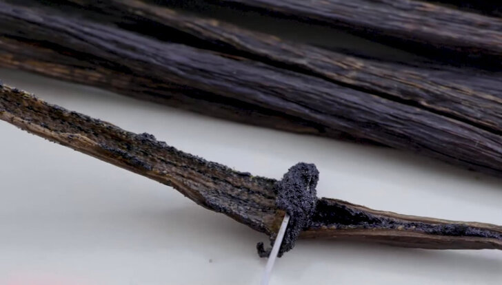 1%Bakery堅持不使用廉價的化學香草精,而是選用被烘焙業稱為「黑金」的天然香草莢。師傅親手刮下細微的黑色香草籽拌入原料,這些在肉眼下極易被忽略的細節,卻是品牌對「天然」的極致追求。