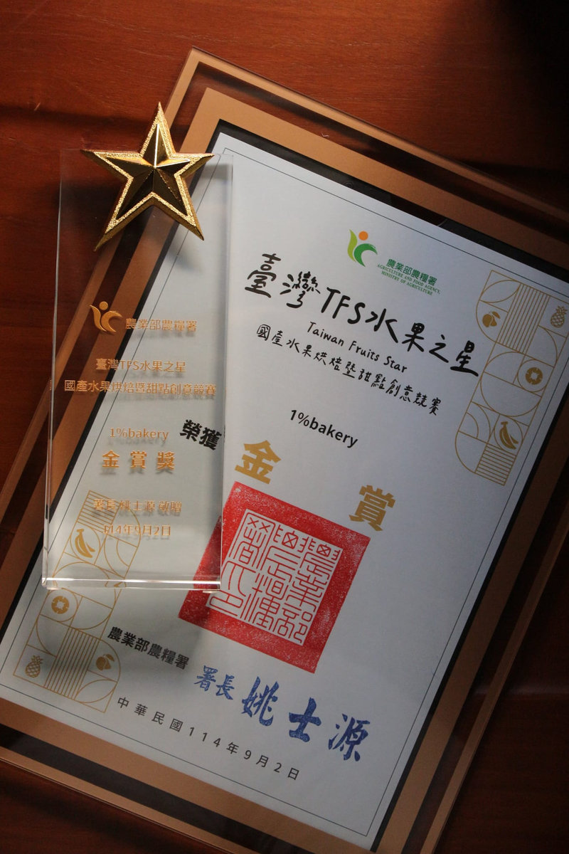 對所有食材的頑固堅持,讓1%bakery奪得「2025台灣TFS水果之星金賞」的最高肯定。