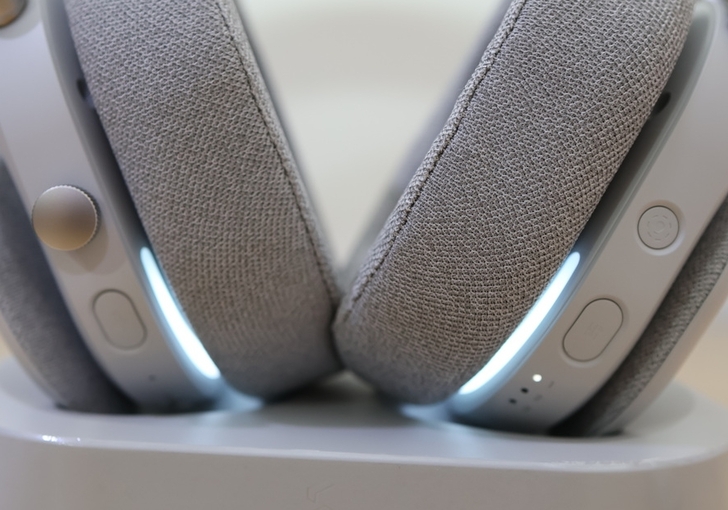 充電時耳罩下緣亮起柔和白色呼吸燈,亮度低調