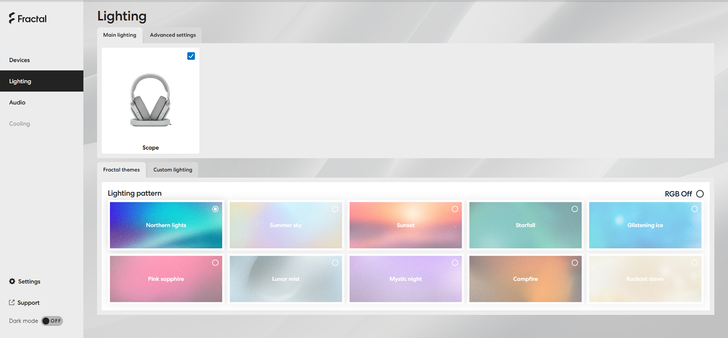 RGB 燈效提供多組預設主題,如 Northern lights、Sunset、Starfall 等