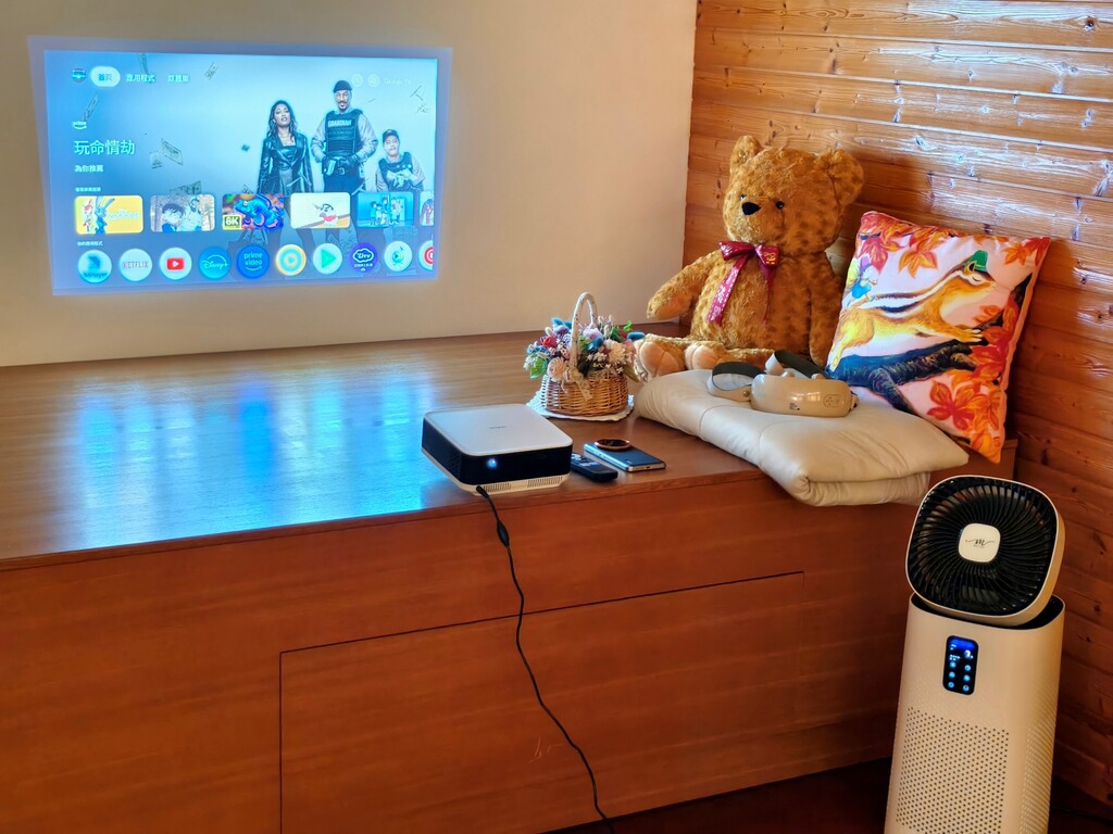 而且不得不說,以往的投影機都只能投影在白色牆面上,