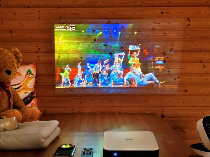 就算不是白牆也可以使用,而且3LCD色彩讓畫面更為明亮飽滿。