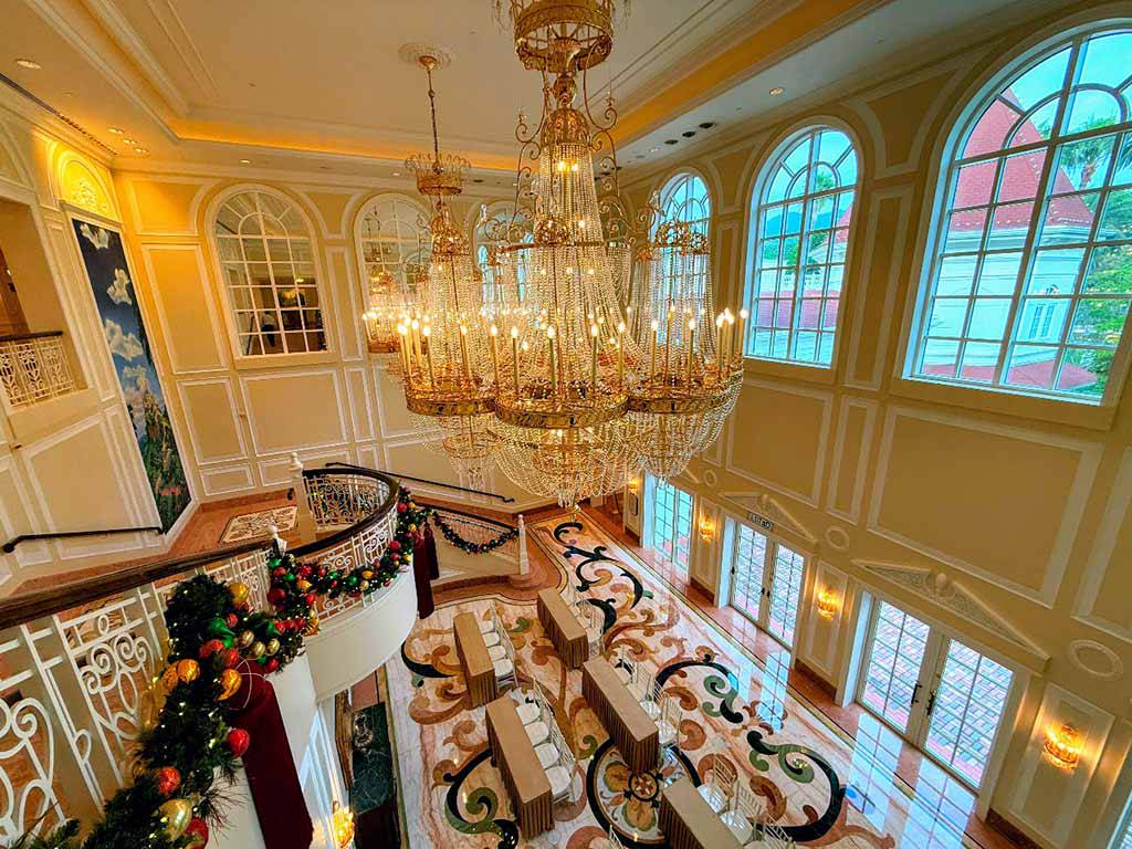 飯店最大特色之一,是從公共空間到客房全面融入迪士尼故事元素。挑高六層樓的大廳空間,以水晶吊燈、歐式家具與現場音樂演出營造典雅氛圍,旅客更有機會在館內與米奇、米妮等迪士尼角色不期而遇,增添住宿驚喜感。公共區域同時規劃多項親子活動與手作體驗,讓不進樂園的時段也能充滿樂趣。