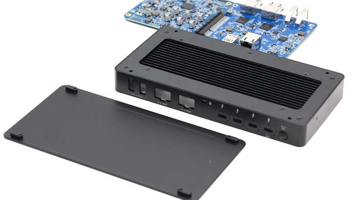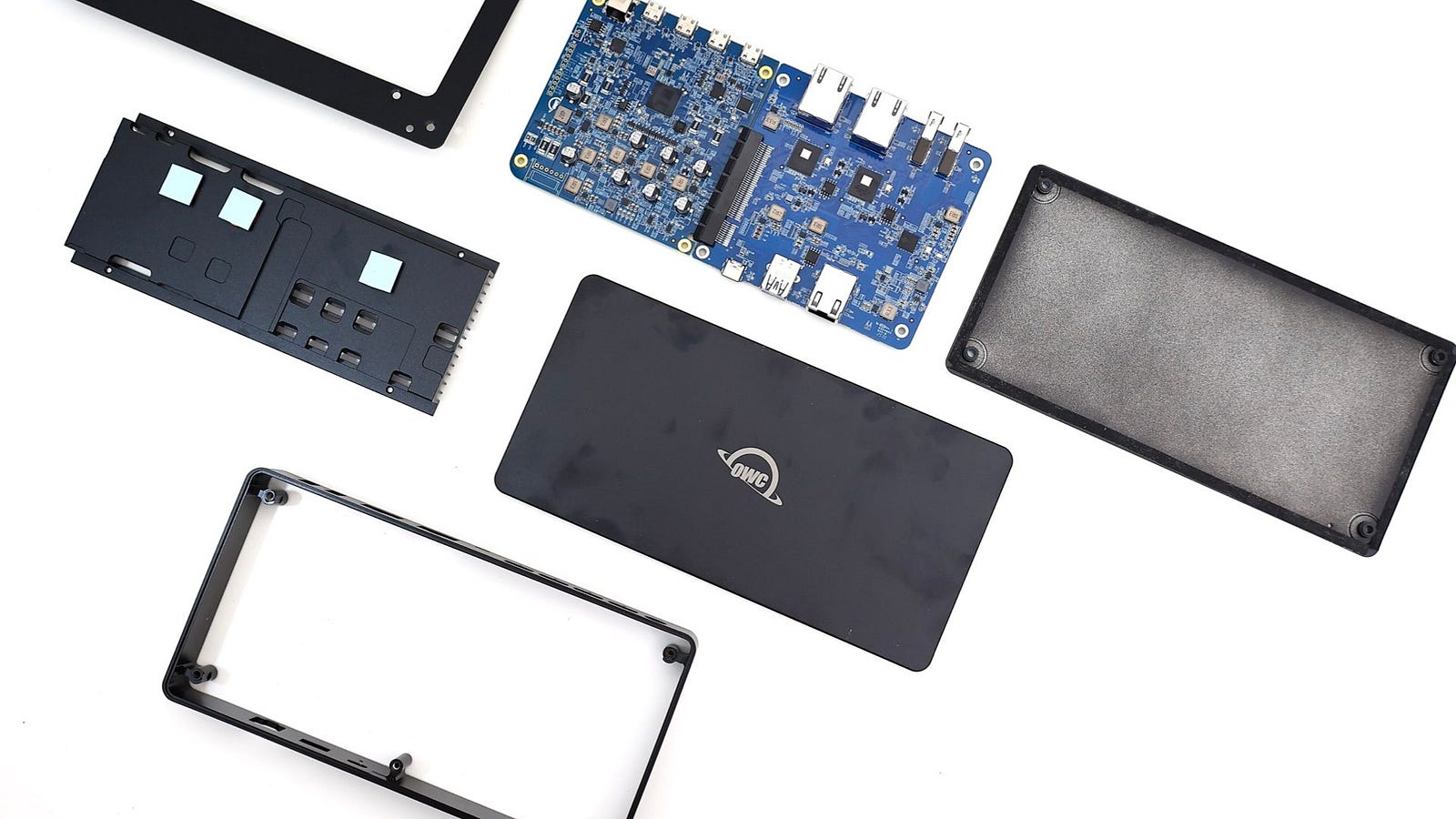 此情此景,我還以為自己看到了小的水冷排風扇。阿~不是,這是 Dock 散熱片!不同於前一代使用了風扇,這代則採用被動散熱的方案。或許是受惠於 10GbE 晶片 AQC113 的功耗降低、減少發熱,相較 AQC107 來說,讓 OWC 認為可以一次採用兩顆也沒問題。