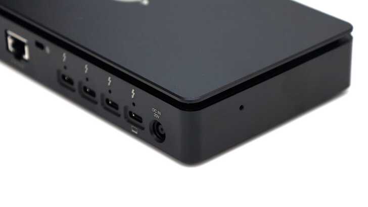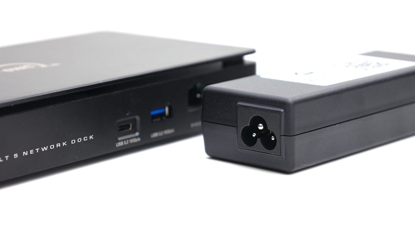 不過這個電源插頭實在是滿長的,Dock 如果靠牆放的話,其實也佔用不小空間。往好處想,就當作為後方的 Thunderbolt 線和網路線預留更大的走線空間吧。