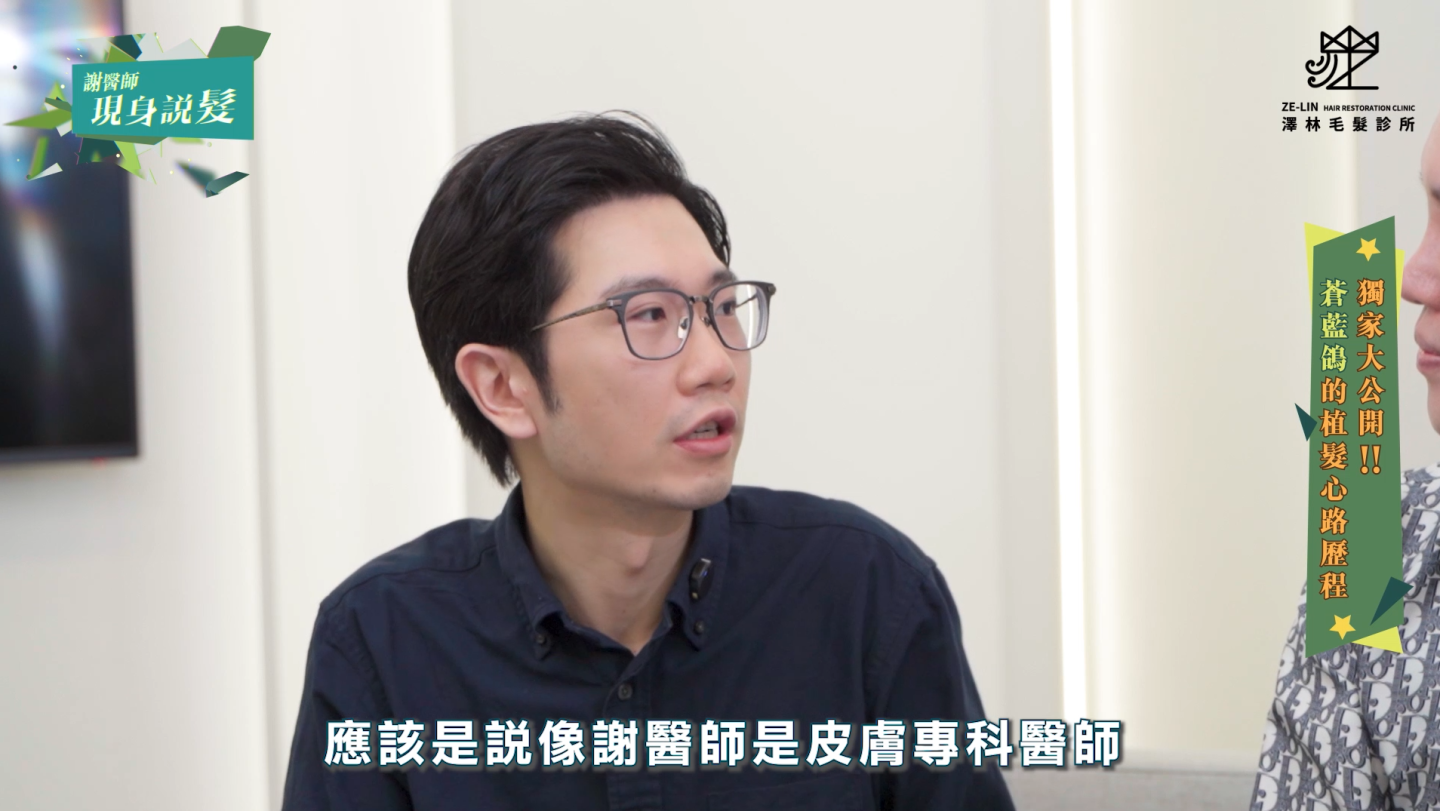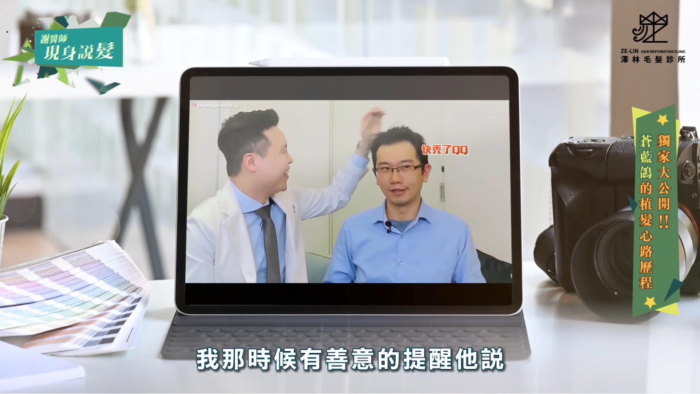 其實早在四年前與謝宗廷醫師合作拍片時,謝醫師就曾提醒他有雄性禿的傾向,也建議可以考慮口服藥物。不過,即使身為醫師的蒼藍鴿,對於「為了頭髮吃藥」仍有些猶豫。