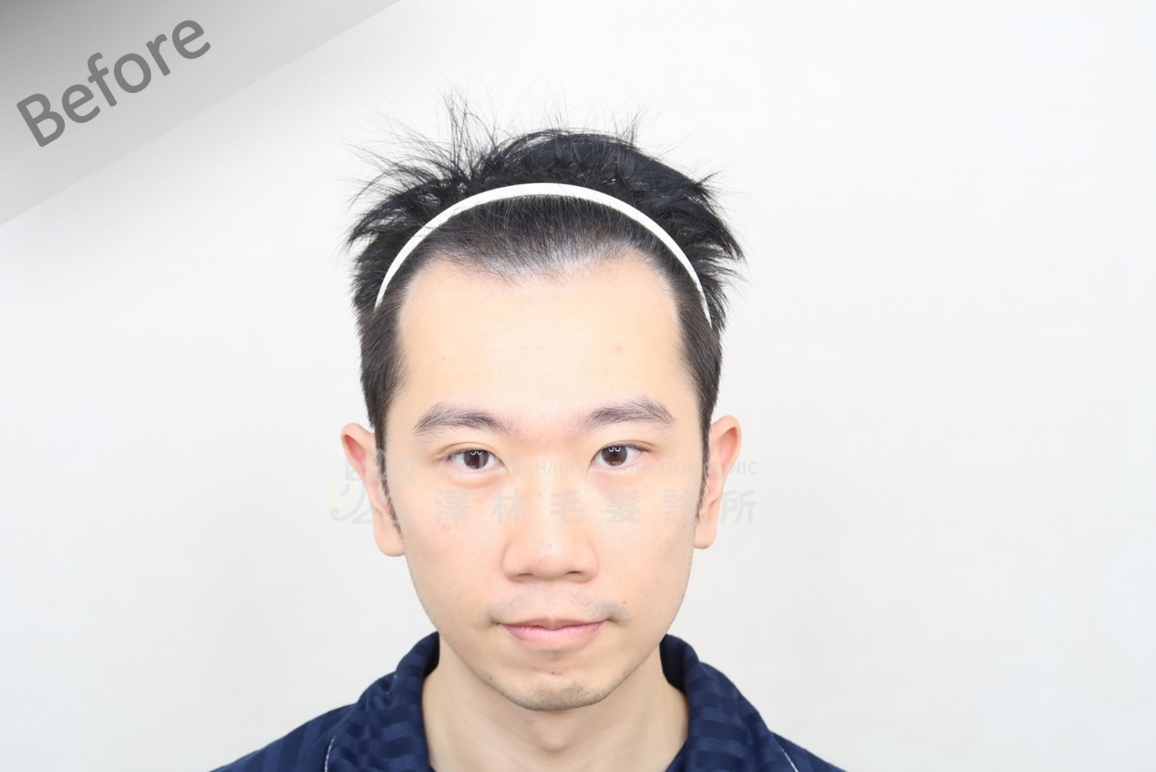 「那時候覺得還沒那麼嚴重,擦擦生髮液應該就能改善。」他曾使用落建兩三個月,但因效果不明顯便中斷,後續也沒有再特別做其他保養。直到髮線逐漸後退、稀疏情況愈發明顯,他才意識到單靠外用難以改變現況,開始認真思考植髮的可能性。