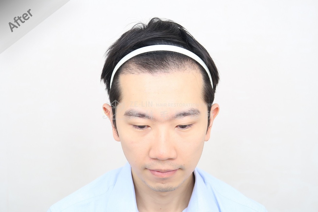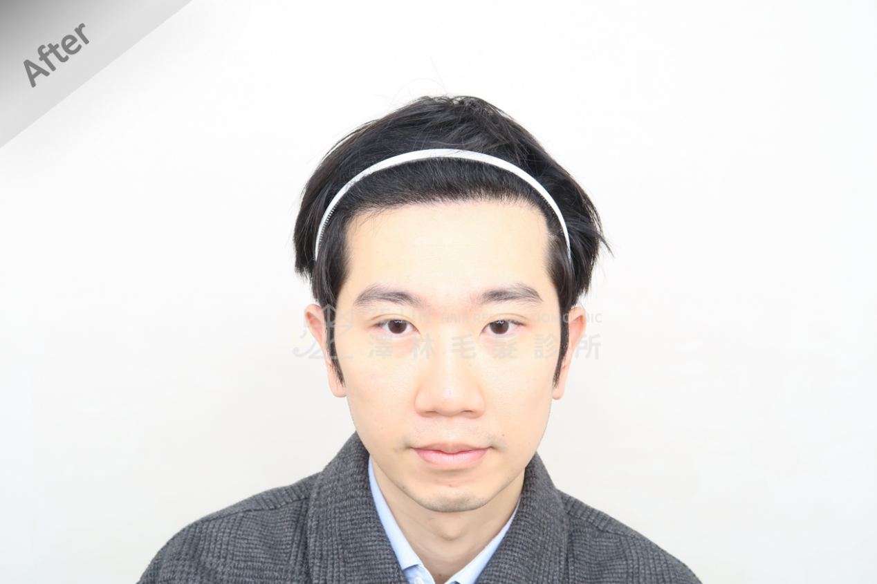 2024 年夏天,他主動聯繫謝宗廷醫師,表達想了解植髮的想法,並親自前往診所面談。謝醫師根據他的髮流與臉型比例,詳細說明髮線設計、種植範圍與可搭配的治療藥物,讓他清楚了解整體方案與預期成果。最終在同年 8 月順利完成植髮手術,為這場與髮線的拉鋸戰畫下句點。
