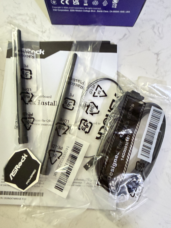 隨附配件含兩支 Wi-Fi 天線、SATA 傳輸線、說明文件