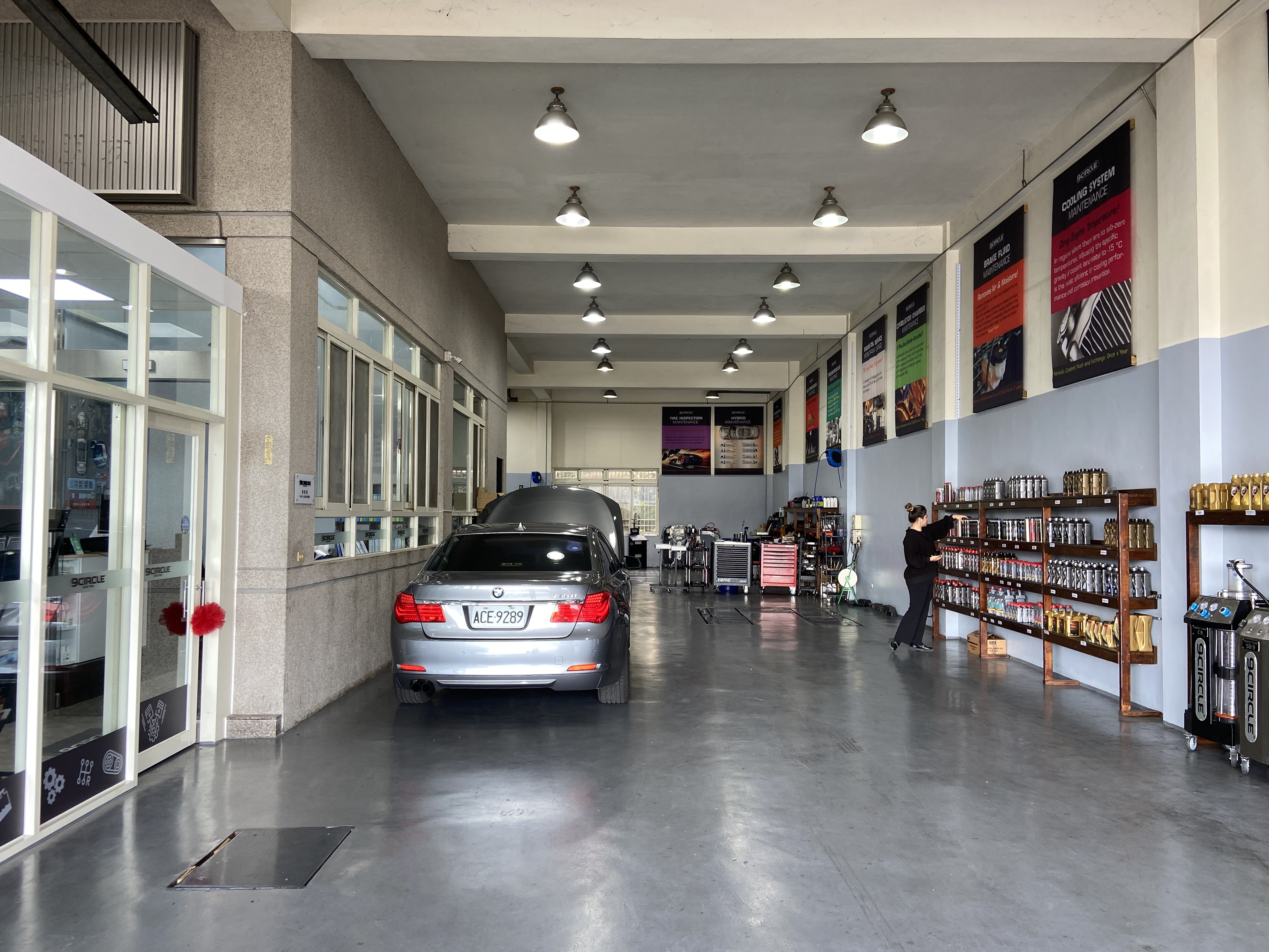 工具跟零件都收納到位,完全打破傳統保養廠油膩膩的印象
