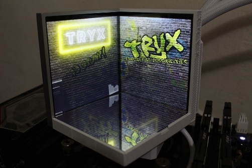 ▼螢幕內部內建雙核心處理器,獨立運作與運算,不會占用主機資源,底部有X象徵TRYX Logo