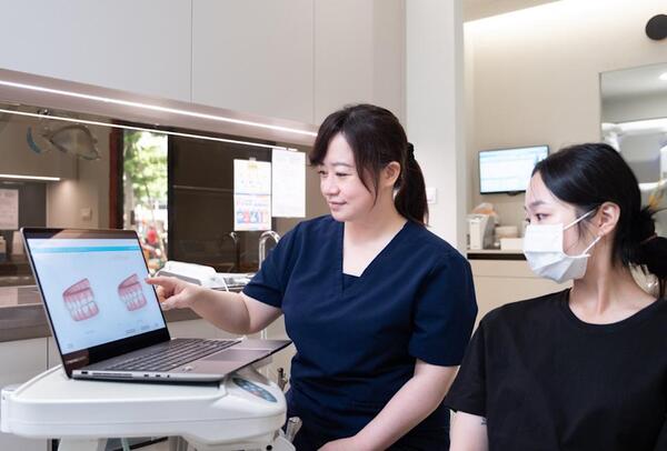 ▲進行整體美學規劃時,齒顎矯正專科陳穎慧醫師會向患者講解牙齒狀況,及未來細節的施作方向。
