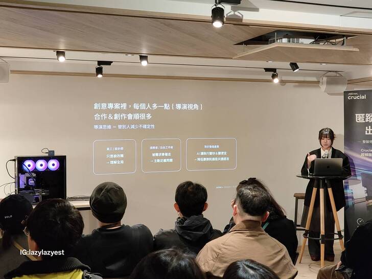 在講座現場,Yafay 談到「下一代創作者的生存法則」時,並沒有從工具操作開始,而是從創作者的判斷力談起。他提到,在 AI 創作世代裡,生成能力已經成為基本能力。工具可以協助產出畫面,也能快速提供大量選項,創作者真正需要負責的,是為專案建立方向。