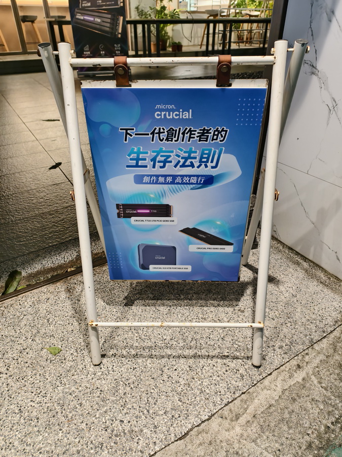 ▼ 入口的小立牌,可以看到今天的主題 下一代創作者的生存法則,美光 Crucial 產品 - 記憶體、SSD、外接硬碟 更是直接印在上面。