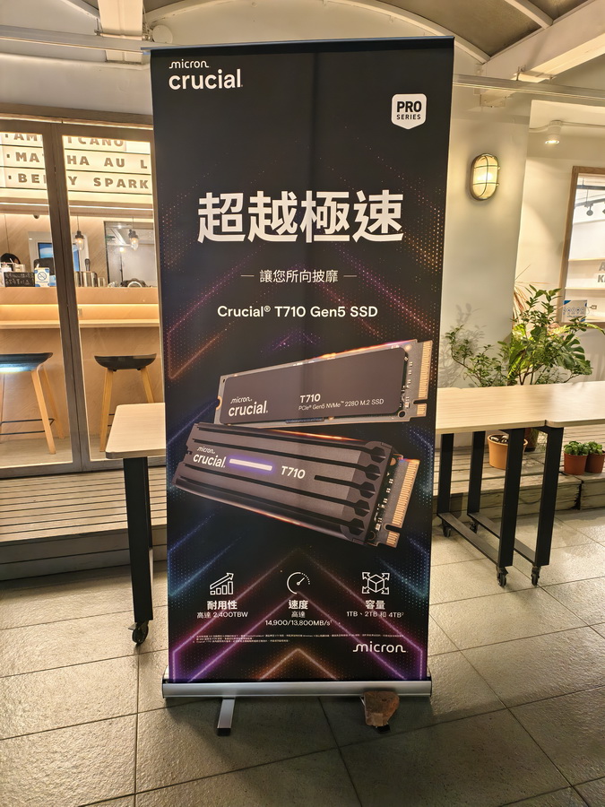 ▼ 美光 Crucial SSD 大型立牌,T710 可說是現在最極速的 Gen5 SSD。