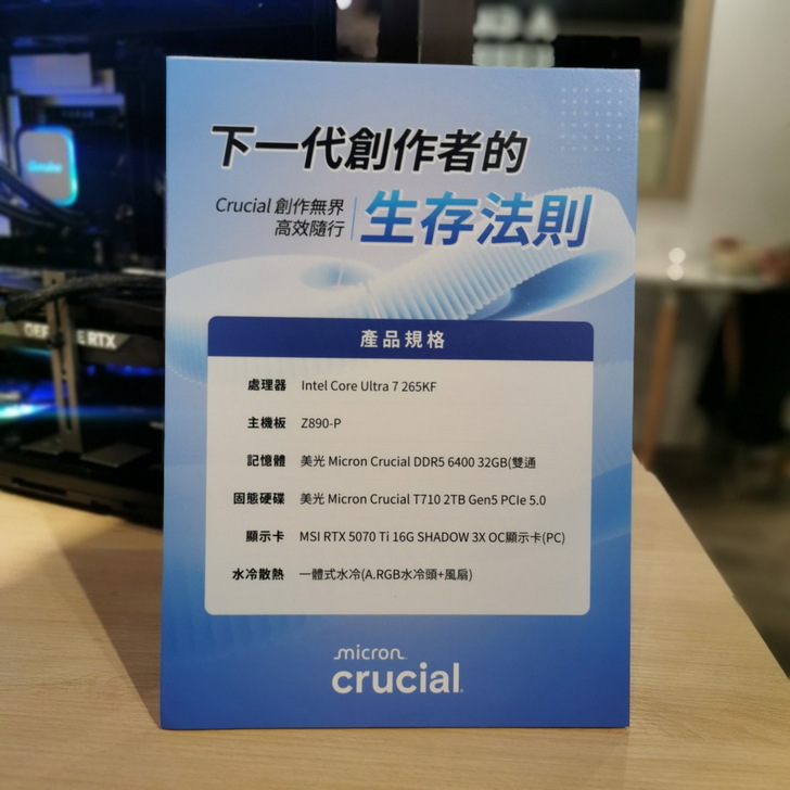 ▼ 現場由 捷元 展示的 AI創作電腦,Crucial Pro DDR5-6400 32GB(16GBx2)記憶體、Crucial T710 Gen 5 SSD,肯定是重點中的重點。
