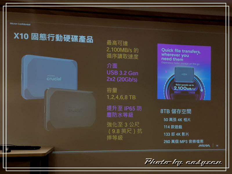 效能與容量:Crucial X10 系列具備最高 2,100 MB/s 的速度,且 X10 提供業界罕見的高達 8TB 超大容量選擇。