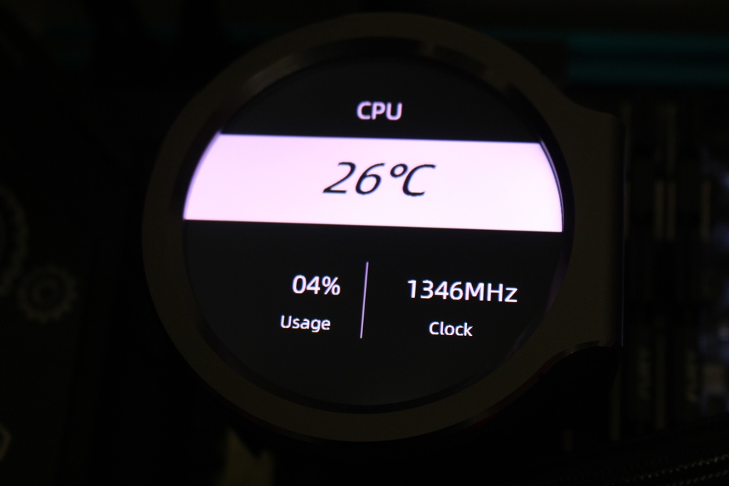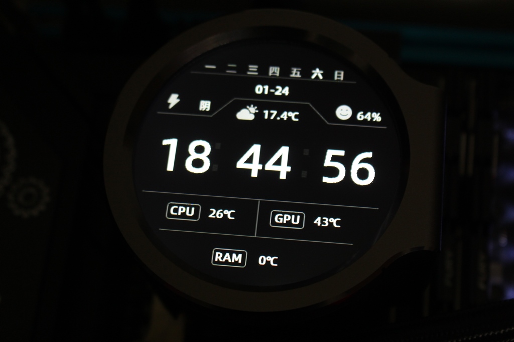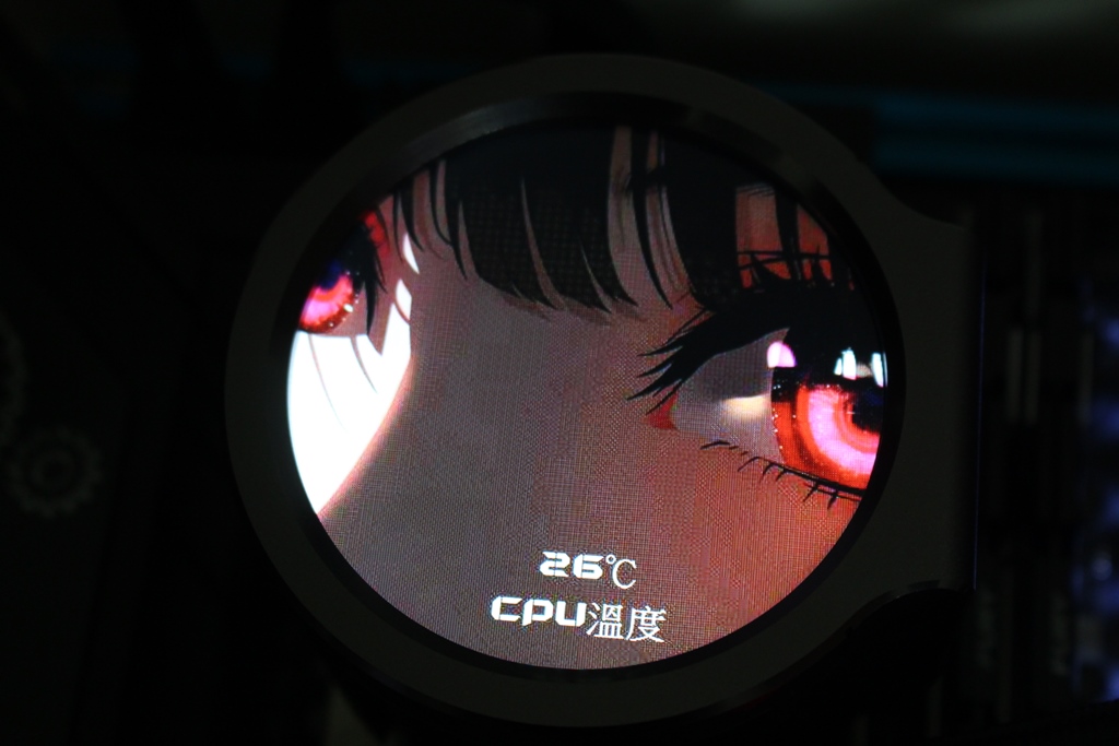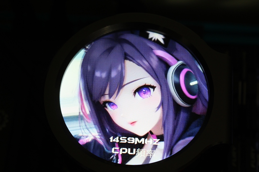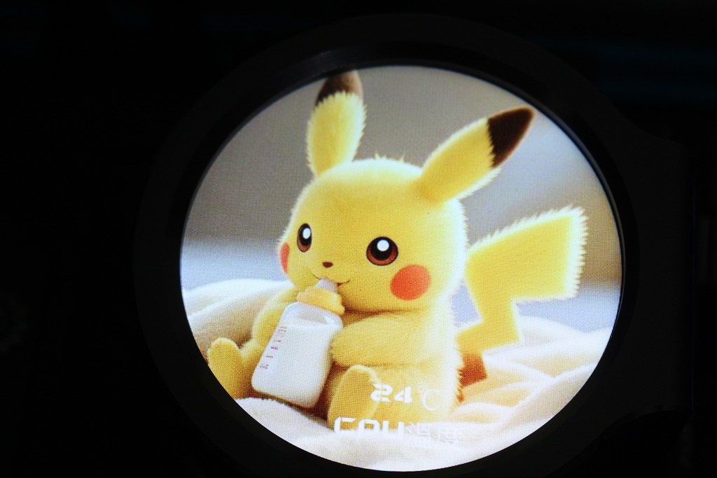 ▼PA800水冷螢幕一覽,正面是2.8吋IPS圓形螢幕,透過專用軟體可以設定圖片、gif動畫與影片