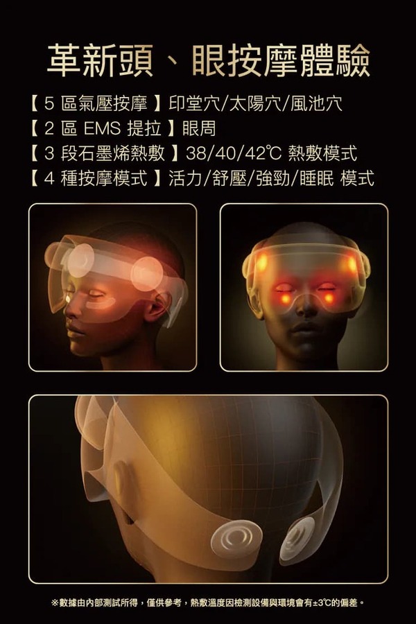 1. 石墨烯溫暖滲透:導熱超強,3 秒即熱且受熱均勻。其釋放出的遠紅外線能深層滲透眼周微血管,活化循環。