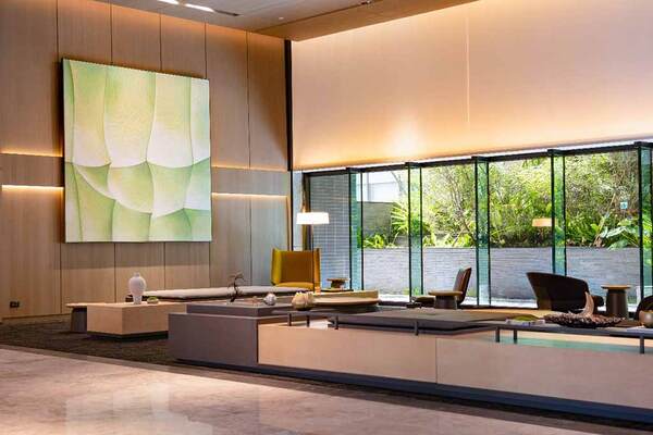 「高雄日航酒店」樓高22層、擁有260間客房的指標性建築,不僅為高雄港灣增添了濃郁的和風氣息。在大廳,映入眼簾的是以茶褐色為主調、充滿日式格柵元素的優雅空間。設計團隊巧妙地將高雄在地文化融入其中,如日式和紙牆面描繪的高雄港灣夜色、象徵五金工業的十字型金屬燈飾,以及畫有高雄木棉花的日式紙傘。
