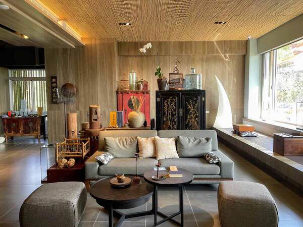 東方禪意設計 傳遞慢活溫度 飯店外觀以沉穩的灰階色為主調,錯落有致的竹林裝飾營造出深山隱士的氛圍。步入大廳,迎面而來的是充滿文化底蘊的「以文武共習的東方美學」設計主軸。旅人可以在此看見文房四寶與充滿童趣的神獸裝飾,展現了傳承與創新的交織。承億文旅經典的「白日夢獸憨吉」也鎮守在門口,提供旅客撰寫一年後寄達的明信片,讓這份旅行的感動能在時光流轉後重新開啟。