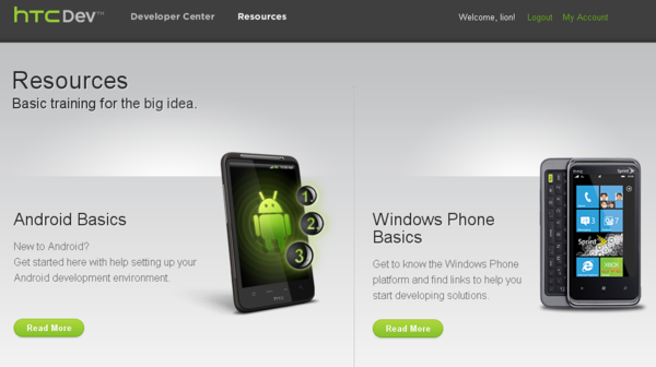 ▼ hTCDev 同時也對 android 與 WP7 的新入門開發者提供了資源服務、教學。