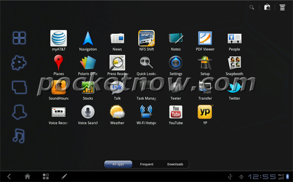 ▼ 應用程式頁面,與一般 3.x 公版不同的是下方有三個按鍵,全部程式、最常使用的程式、下載的程式。