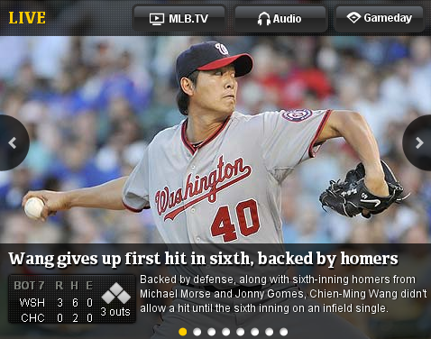 不用說比前兩場比賽出色,就在以往王建民全勝時期能丟出如此表現也是很不容易的,更何況王是在受到了如此嚴重、被稱為投手癌症的重傷復出之後。相比之下,我自己以前更喜歡的曹錦輝就令人失望,我到現在還是認為他的天份比王建民更好,比王建民更有機會成為大明星——甚至是在大聯盟!我永遠記得他第一場的出賽,第二球就被 Michael Young 幹出了全壘打大牆,Welcome to BIG LEAGUE!我的衣櫃裡頭還有洛磯的黑色 TSAO 71球衣,與 MVPBASEBALL 2004 不過那件球衣我再也不穿了。