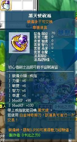 耶!黑天使戒~特效有些不同(⊙ˍ⊙)~~~~~戒指+10攻/魔攻耶(≧▽≦)