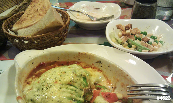 ▼ 我自己點的焗烤千層麵,味道其實還好,普普。烤得太水,配料也滿普通的。
