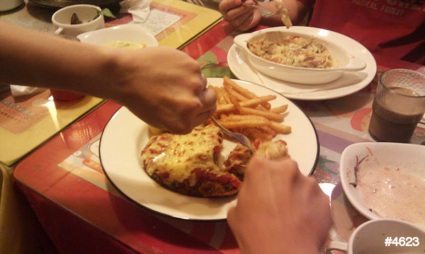▼ 這是今天主角所點的「焗烤起士雞排」,果然不愧是主角,魄力十足,主角就是要紅色的!(咦?)