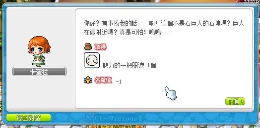 拉娜 打一隻地獄巴洛古(⊙ˍ⊙)取得剪票員的手套之後拿給