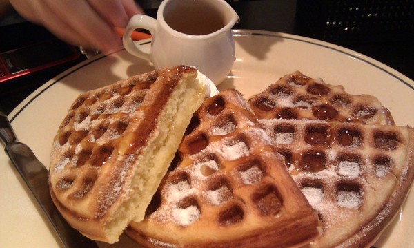 ▼ 朋友點的鬆餅,厚實糖粉也多,蜂蜜自己添。