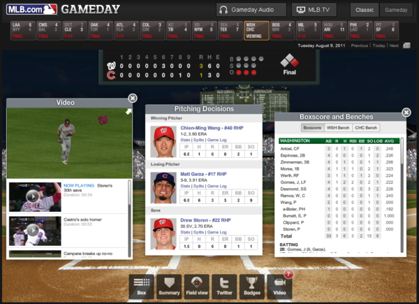 這網頁應該老球迷們都非常熟悉了,一路看到他功能越來越完整,資訊也越來越完備,連球出手的轉速差 Pfx 都能查到,而最大的賣點莫過於即時的小人揮棒轉播,看起來頗有實況野球的味道,適合不能太張揚的朋友們觀看。