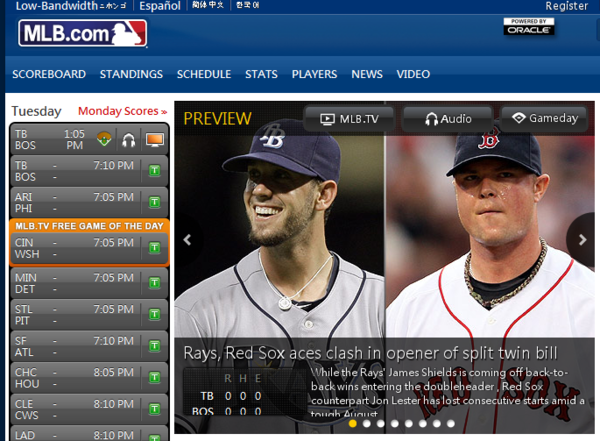 大聯盟官方的網路轉播,通常都是一年要大概兩三千台幣,合買的人也很多,轉播當然是英文主播不會有曾公或是展元,不過幸運的是,這一場剛好被選上隨機的免費 MLB TV 轉播,登記帳號之後就能免費收看了!
