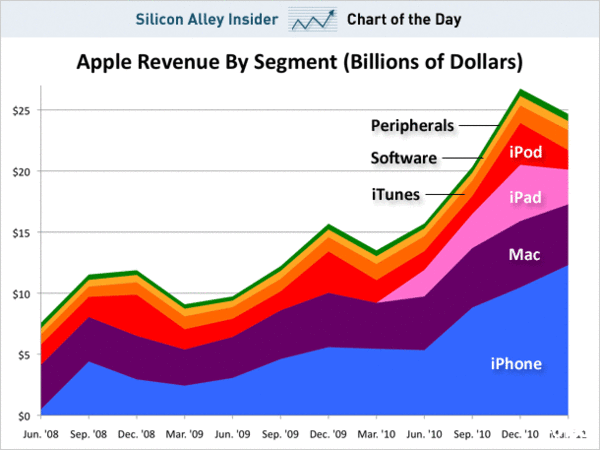 看到這張圖大多數人的解讀是... 哇~ iOS 設備已經佔了全 Apple 約 2/3 的總營收。