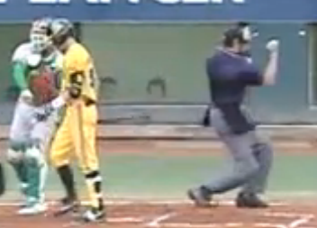 ▼ 是想要跟我一起打昇龍拳嗎?(藍普洛夫,中華職棒裁判,三振時有招牌動作。)