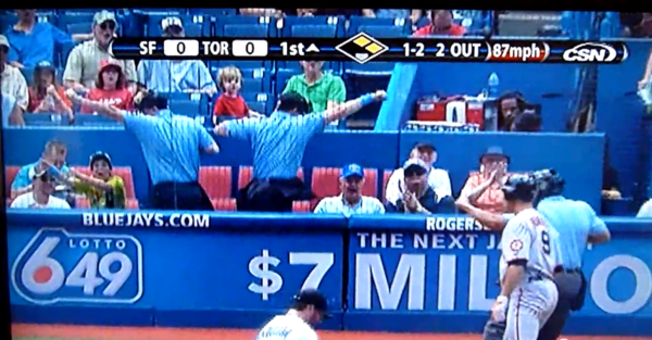而在大聯盟多倫多藍鳥隊有兩個遠近聞名的球迷玩得更瘋,不但全套裝備備齊,甚至動作也是有模有樣,身材也不含糊全比照正式主審,我是投手的話不分心也難……。