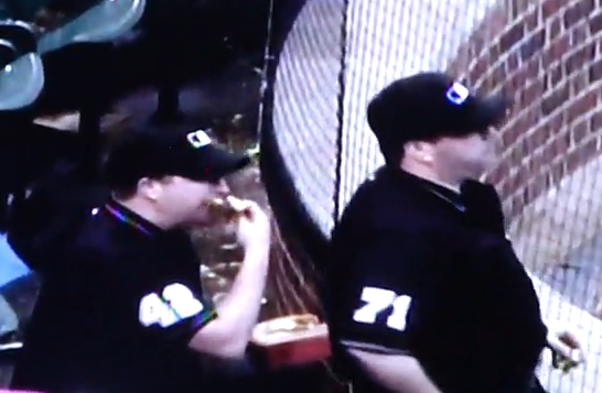 ▼ 連界外球,換顆新球給投手的動作都表現出來。嗯,真正的主審正在看著你啊老哥。