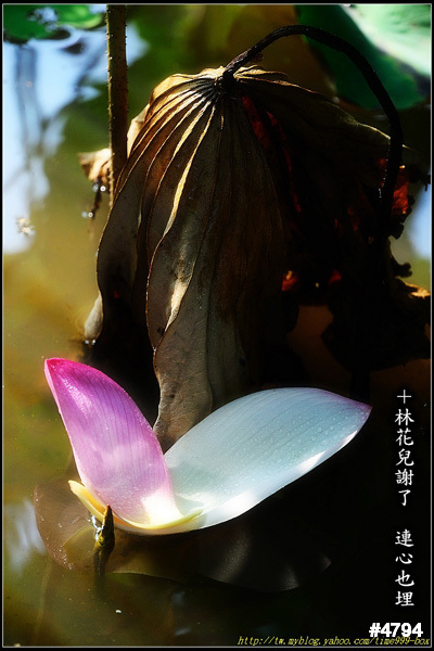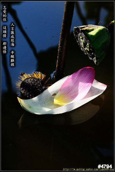 [分享] 荷花~葬心 風景 · ㄚ伯 · 發表於 2011-08-19 21:02 · · 檢舉 列印版 twitter plurk 6.6千閱讀次數 葬心 - 黃鶯鶯 蝴蝶兒飛去 心亦不在 淒清長夜誰來 拭淚滿腮 是貪點兒依賴 貪一點兒愛 舊緣該了難了 換滿心哀 怎受的住 這頭猜 那邊怪 人言匯成愁海 辛酸難捱 天給的苦 給的災 都不怪 千不該 萬不該 芳華怕孤單 +林花兒謝了 連心也埋 他日春燕歸來 身何在 用了葬心這首歌詞當主題 哀怨的歌曲 像是荷花期接近了尾聲 讚 收藏 快速回應 引言回應 登入來回應 header home