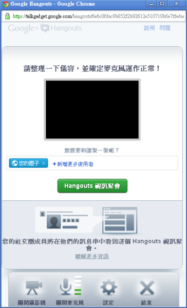 ▼ 接下來跳出一個視窗,這邊你開始對著你的視訊整理了一下頭髮,並且穿上了衣服,邀請你所有圈子裡頭的人。