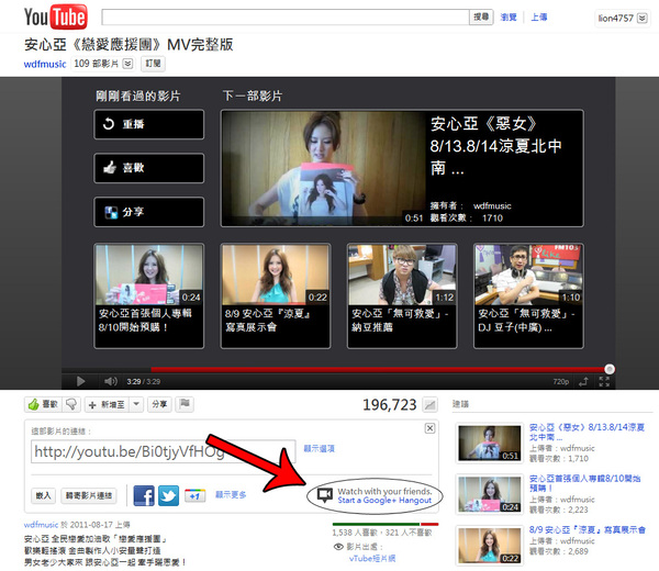 ▼ 首先我們來模擬情境一下,你在 Youtube 上頭看到了一個你超喜歡的影片,你迫不及待的想要跟你的朋友們傳教,於是你點開了 Youtube 的「分享」按鈕,然後你發現了一個小秘密……有一個「跟你的朋友一起看」的按鈕,這真是太好了(點擊)