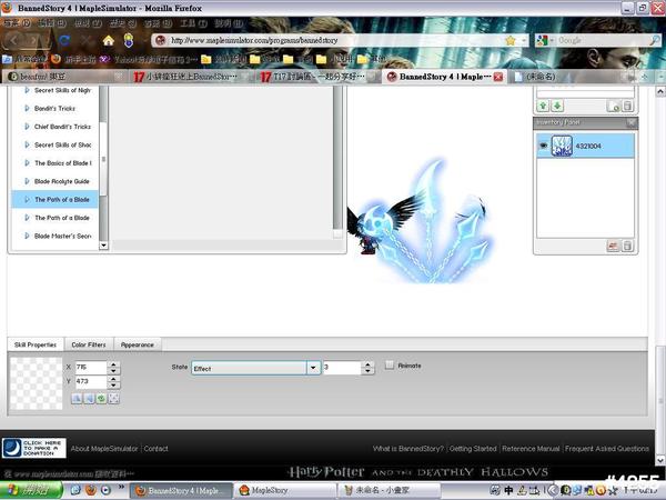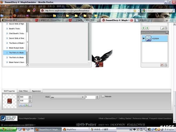 (≧▽≦) 大家也可以把作品PO上來和小緋分享噢 <( ̄︶ ̄)> 先來2張紙娃娃的 女主角-琪 還有 男主角-瑋 在來(≧▽≦) 哦哦哦好好玩噢 > 讚 收藏 快速回應 引言回應 共 22 則回應 11 樓 · 神王 · 發表於 2011-08-22 19:33 · 檢舉 引述《標影》之銘言: > 引述《小 緋 ● ω ●》之銘言: > > (≧▽≦) > > > > 大家也可以把作品PO上來和小緋分享噢 <( ̄︶ ̄)> > > > > 先來2張紙娃娃的 女主角-琪 還有 男主角-瑋 > > > > > > > > > > > > 在來(≧▽≦) > > > > > > > > > > > > 哦哦哦好好玩噢 ><! > > 給你一個贊 多送你一張圖 這張圖不是波爾薩俐落ㄇ 海賊王的黃袁 讚 引言回應 12 樓 · 標影 · 發表於 2011-08-22 21:36 · 檢舉 引述《神王》之銘言: > 引述《標影》之銘言: > > 引述《小 緋 ● ω ●》之銘言: > > > (≧▽≦) > > > > > > 大家也可以把作品PO上來和小緋分享噢 <( ̄︶ ̄)> > > > > > > 先來2張紙娃娃的 女主角-琪 還有 男主角-瑋 > > > > > > > > > > > > > > > > > > 在來(≧▽≦) > > > > > > > > > > > > > > > > > > 哦哦哦好好玩噢 ><! > > > > 給你一個贊 多送你一張圖 > > > 這張圖不是波爾薩俐落ㄇ 海賊王的黃袁 我以為你是因為我發的奪魂鋸圖才回復的 哪怕被砲到滿目瘡痍;用殘存的意志繼續創作。 哪怕人外人天外天;沸騰的熱血也會突破一切。 將極限與限制一起突破,親手掌握自己的『道』。 我乃標影‧傑斯特! 你以為,我是誰啊! 讚 引言回應 13 樓 · 特約小秘書 · 發表於 2011-08-23 12:22 · 檢舉 大家改的圖都好好笑耶 (≧▽≦) 親愛的大朋友小朋友 和特約雜技團一起暢遊楓之谷吧! http://game.techbang.com.tw/games/3-maple-story 讚 引言回應 14 樓 · Crazy小骨 · 發表於 2011-08-23 12:43 · 檢舉 奪魂鉅是 柳丁擱來亂的啦 我是一個有品味的帥氣小神偷id:Crazy小骨骨 想幹麻就幹麻 目前在菇菇寶貝喔以一百二十等為目標 請反白 讚 引言回應 15 樓 · 漸落星曉 · 發表於 2011-08-23 12:59 · 檢舉 那個...............技能特效要怎麼做??動態又要怎做?? 讚 引言回應 16 樓 · 緋★寶石 · 發表於 2011-08-23 14:30 · 檢舉 琪和瑋的相識哦 @@ 看來我好像做得很不好耶〒ˍ〒 讚 引言回應 17 樓 · 標影 · 發表於 2011-08-23 14:52 · 檢舉 引述《粉庭呱呱~》之銘言: > 那個...............技能特效要怎麼做??動態又要怎做?? 我貼圖說明 1.選擇KILL 下方有一堆職業的技能(龍魔的要另外找喔) 2.點你所要的技能 會出現一本書 照圖片點選下方選項 即可出現技能(有些要調到4~5才會出現喔) 這時 先調好動作 在調整完之前 先把技能丟一邊 快調好時 看一下X和Y 會對你有幫助的 有Y讓你跟技能平行 成功 也可以調整技能大小 如果你很有耐心一張一秒的做 可以把他連成動畫 如這個 光8秒 動用了72張圖 哪怕被砲到滿目瘡痍;用殘存的意志繼續創作。 哪怕人外人天外天;沸騰的熱血也會突破一切。 將極限與限制一起突破,親手掌握自己的『道』。 我乃標影‧傑斯特! 你以為,我是誰啊! 1 個人說讚 引言回應 18 樓 · 漸落星曉 · 發表於 2011-08-23 18:53 · 檢舉 引述《標影》之銘言: > 引述《粉庭呱呱~》之銘言: > > 那個...............技能特效要怎麼做??動態又要怎做?? > > 我貼圖說明 > 1.選擇KILL 下方有一堆職業的技能(龍魔的要另外找喔) > > 2.點你所要的技能 會出現一本書 > > 照圖片點選下方選項 即可出現技能(有些要調到4~5才會出現喔) > > 這時 先調好動作 > > 在調整完之前 先把技能丟一邊 > > 快調好時 看一下X和Y 會對你有幫助的 有Y讓你跟技能平行 > > 成功 也可以調整技能大小 > > 如果你很有耐心一張一秒的做 可以把他連成動畫 > 如這個 光8秒 動用了72張圖 謝謝~~<( ̄︶ ̄)> 那個..........你圖片裡背上的翅膀我做不出來耶?? 讚 引言回應 19 樓 · 標影 · 發表於 2011-08-23 21:46 · 檢舉 引述《粉庭呱呱~》之銘言: > 引述《標影》之銘言: > > 引述《粉庭呱呱~》之銘言: > > > 那個...............技能特效要怎麼做??動態又要怎做?? > > > > 我貼圖說明 > > 1.選擇KILL 下方有一堆職業的技能(龍魔的要另外找喔) > > > > 2.點你所要的技能 會出現一本書 > > > > 照圖片點選下方選項 即可出現技能(有些要調到4~5才會出現喔) > > > > 這時 先調好動作 > > > > 在調整完之前 先把技能丟一邊 > > > > 快調好時 看一下X和Y 會對你有幫助的 有Y讓你跟技能平行 > > > > 成功 也可以調整技能大小 > > > > 如果你很有耐心一張一秒的做 可以把他連成動畫 > > 如這個 光8秒 動用了72張圖 > > > 謝謝~~<( ̄︶ ̄)> > 那個..........你圖片裡背上的翅膀我做不出來耶?? 那個要在特效區裡才找的到 努力找 你可以連龍魔的技能都一起找到 讚 引言回應 20 樓 · 緋★寶石 · 發表於 2011-08-24 02:12 · 檢舉 引述《標影》之銘言: > 引述《粉庭呱呱~》之銘言: > > 那個...............技能特效要怎麼做??動態又要怎做?? > > 我貼圖說明 > 1.選擇KILL 下方有一堆職業的技能(龍魔的要另外找喔) > > 2.點你所要的技能 會出現一本書 > > 照圖片點選下方選項 即可出現技能(有些要調到4~5才會出現喔) > > 這時 先調好動作 > > 在調整完之前 先把技能丟一邊 > > 快調好時 看一下X和Y 會對你有幫助的 有Y讓你跟技能平行 > > 成功 也可以調整技能大小 > > 如果你很有耐心一張一秒的做 可以把他連成動畫 > 如這個 光8秒 動用了72張圖 標影 我哥哥說很有震撼力 PS我哥哥很少讚美人噢 XDD 我把4一整個功能都看過了 還是喜歡用3 <( ̄︶ ̄)> 4的技能 實在部會用 〒ˍ