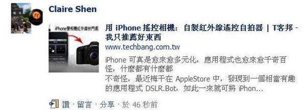 http://www.techbang.com.tw/posts/6986-iphone-camera-with-remote-control-infrared-remote-control-self-timer-self-made